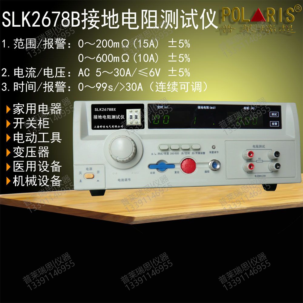 SLK2678BX系列接地電阻測試儀是按照GB﹑IEC﹑ISO﹑BS﹑UL﹑JIS等國際國內(nèi)的安全標(biāo)準(zhǔn)而設(shè)計(jì)的,接地電阻的指標(biāo)是衡量各種電氣設(shè)備安全性能的重要指標(biāo)之一。它是在大電流(25A或10A)的情況下對接地回路的電阻進(jìn)行測量,同時(shí)也是對接地回路承受大電流指標(biāo)的測試,以避免在絕緣性能下降(或損壞)時(shí)對人身的傷害。本測試儀是為滿足以上要求為生產(chǎn)車間及實(shí)驗(yàn)部門提供高性能測試儀器而開發(fā)生產(chǎn)的。本儀器對供電電壓要求不高,測量精度高,速度快,使用方便,特別適用于要求高的實(shí)驗(yàn)室和自動(dòng)檢測線上使用。斷路報(bào)警選擇功能(即開路報(bào)警)可以方便地知道儀器是否工作在正常測試狀態(tài),用戶可以根據(jù)實(shí)際需要選擇是否需要此項(xiàng)功能。本儀器采用三位半數(shù)字顯示,讀數(shù)方便,采用優(yōu)化設(shè)計(jì),整機(jī)具有極高的可靠性和穩(wěn)定性。