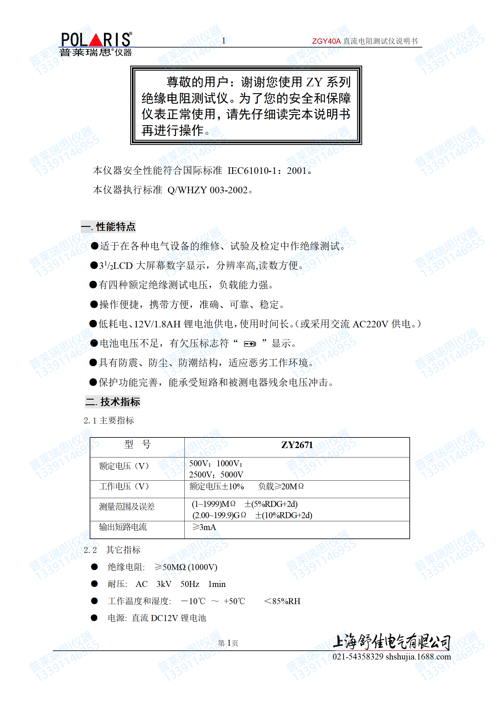 本儀器執(zhí)行標(biāo)準(zhǔn) Q/WHZY 003-2002。
